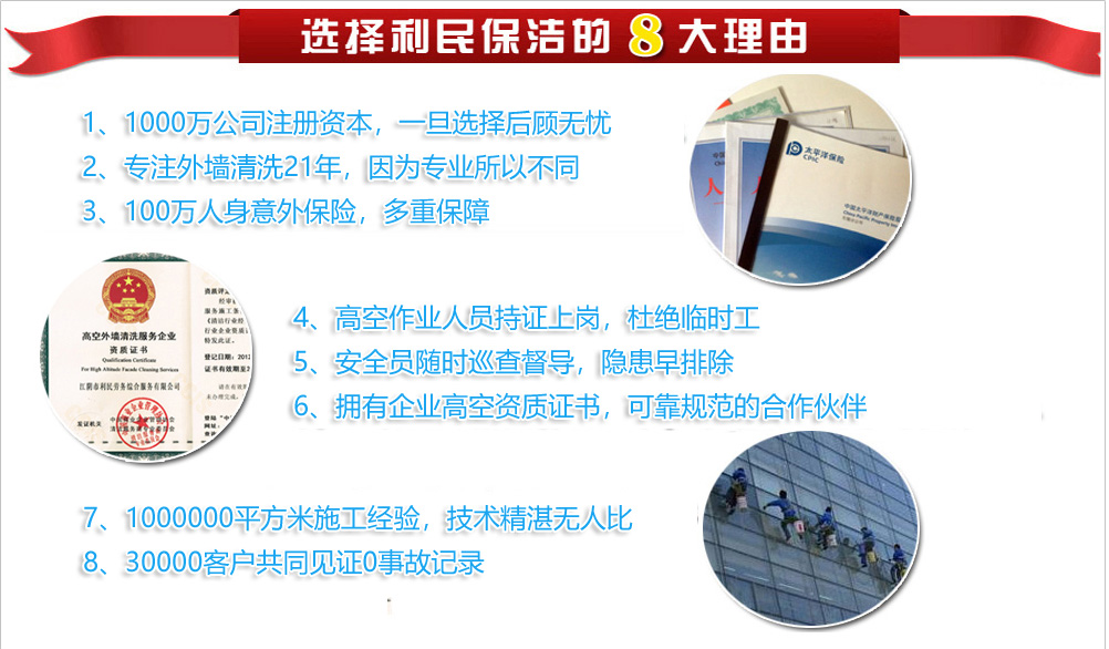 ![]() 利民,高空清潔行業(yè)的卓越領(lǐng)跑者。我們的外墻清洗業(yè)務(wù)包括:外墻清潔、外墻防水補(bǔ)漏、外墻涂料粉刷、LED樓體亮化工程高空安裝、外墻防水工程高空施工等系列高空作業(yè)項(xiàng)目,是物業(yè)公司、景觀工程公司、廣告公司、建筑、安裝公司、幕墻公司、各企事業(yè)單位等最佳高空作業(yè)服務(wù)專業(yè)供應(yīng)商.專業(yè)安全高效,承包高空外墻清洗,.專業(yè)的施工團(tuán)隊(duì),所有人員均持證上崗,高空人員均購買100萬保險(xiǎn),21年1000000平方的外墻清洗經(jīng)驗(yàn),優(yōu)質(zhì)的服務(wù)..[詳細(xì)] 經(jīng)典案例更多 >